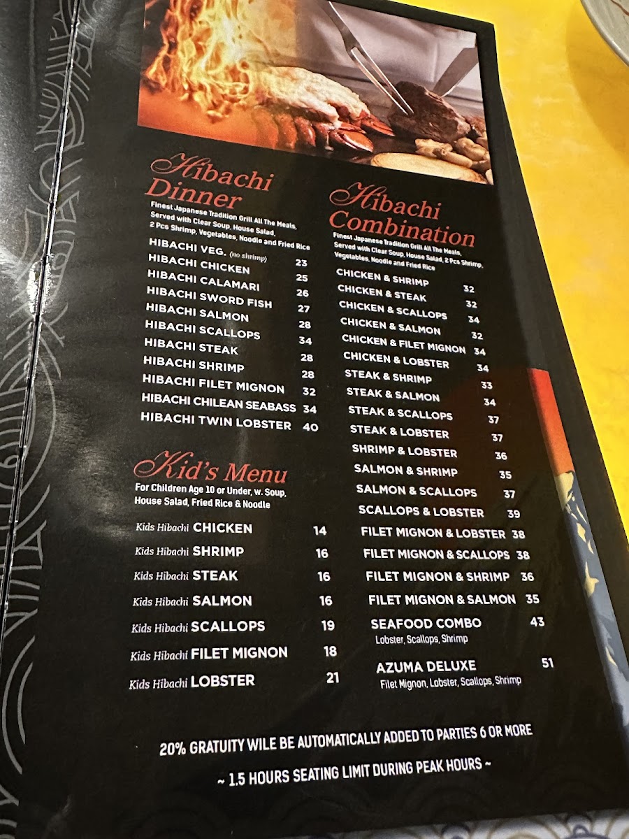 Welcome to Azuma Sushi Bistro, a hidden gem located at 2452 US-9 #109 in Malta, NY. This vibrant sushi restaurant offers a delightful menu that caters to all tastes, from classic options to unique specialty rolls. Essential items include the Avocado Roll and the Alaskan Roll, showcasing fresh ingredients and bold flavors. Don't miss out on the unforgettable hibachi experience, featuring dishes like Hibachi Tofu and fried ice cream, perfect for special celebrations.